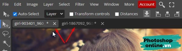 Bạn chọn tab có ảnh 2, sau đó bấm Ctrl + V đến dán ảnh vừa sao chép vào.