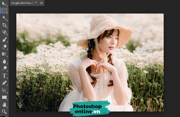 Bước 1: Tải ảnh từ máy tính lên, truy cập Photoshop online, sau đó chọn File ➜ Open ➜ Chọn ảnh.