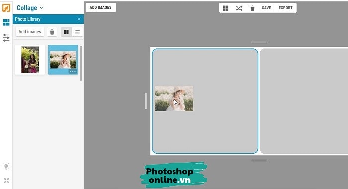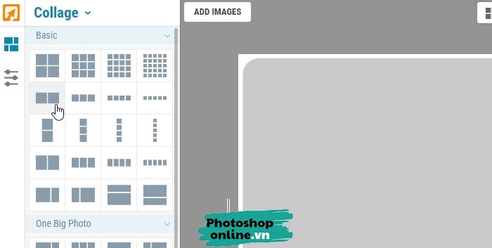 Truy cập Photoshoponline.vn/ghep-anh, sau đó bấm vào nút Make a Collage để bắt đầu.