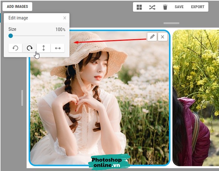Ngoài ra có thể làm nhiều thứ khác như chỉnh kích thước ảnh, xoay ảnh sang trái, sang phải hay lật ngược ảnh lại. Làm điều này bằng cách di chuột vào ảnh ➜ Bấm vào biểu tượng cây bút.