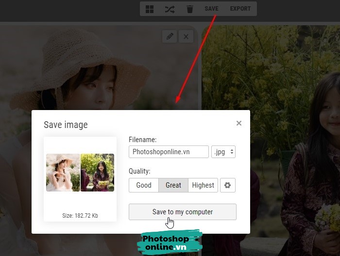 Với một vài thao tác là bạn có thể dễ dàng ghép 2 ảnh thành 1 rồi đấy, mọi thứ đều làm trực tuyến trên trình duyệt nên bạn không cần tốn thời gian tải hay cài đặt phần mềm trước khi dùng.