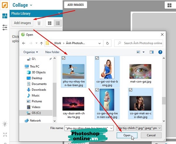 Chọn khung xong thì bấm nút ADD IMAGESAdd Images ➜ Chọn tất cả ảnh muốn ghép rồi bấm Open.