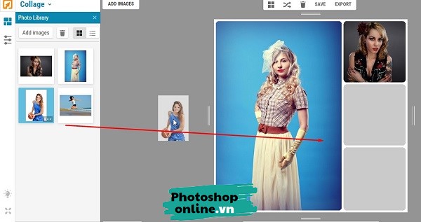 Đây là bước thú vị nhất, bạn chỉ cần dùng chuột kéo ảnh vào ô ảnh nào bạn thích là được.