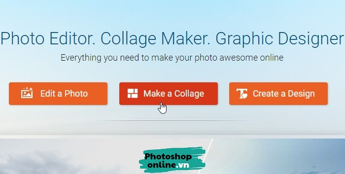Bạn vào Photoshoponline.vn/ghep-anh, tiếp đó bấm vào nút Make a Collage.