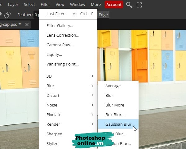 Bước 4: Đến menu chọn Filter ➜ Blur ➜ Chọn kiểu mờ là Gaussian Blur.