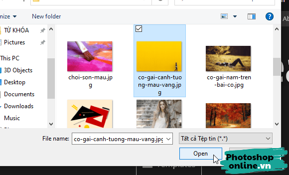 Sau đó tải ảnh lên bằng cách bấm Open From Computer ➜ Hộp thoại Open xuất hiện, bạn tìm đến thư mục chứa ảnh, chọn ảnh rồi bấm Open.