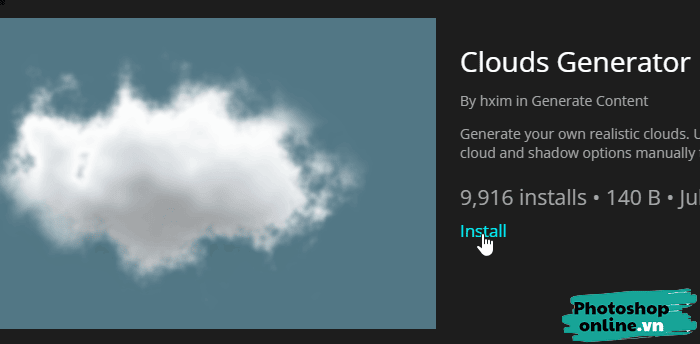 Bước 2: Thích cái nào thì bấm vào nhé, ví dụ mình muốn tạo mây chẳng hạn, mình sẽ chọn plugin có tên là Clouds Generator.