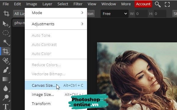Bước 1: Đến phần menu chọn Image Canvas Size.