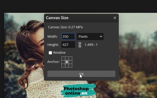 Bước 2: Nhập tỷ lệ mong muốn tại phần Width Height ➜ Bấm Ok.