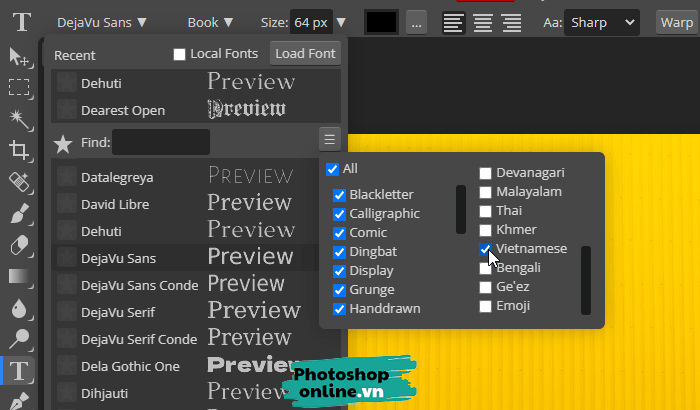 Tìm font chữ tiếng Việt trong Photoshop online