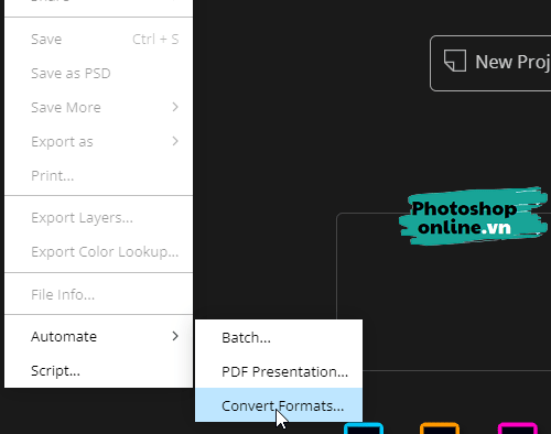 Bước 2: Đến menu chọn File ➜ Chọn Automate ➜ Chọn tiếp Convert Formats.