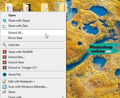 Bước 5: Vì file ảnh về là file Zip nên bạn phải giải nén ra thành folder trước khi dùng.