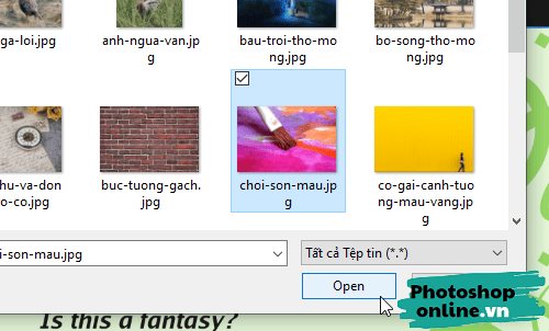 Bước 2: Cửa sổ Open sẽ xuất hiện, bạn đến thư mục chứa ảnh, chọn ảnh rồi bấm Open.