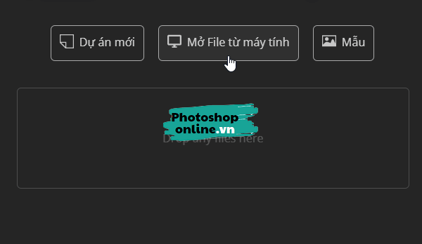 Bước 3: Bấm nút Mở File từ máy tính để tải file ảnh lên Photoshop online và bắt đầu sửa ảnh.