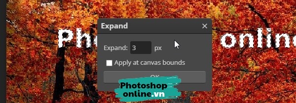 Nhập thông số là 3 vào rồi bấm Ok. Bước này sẽ mở rộng vùng chọn ra một chút để xóa chữ chính xác hơn.