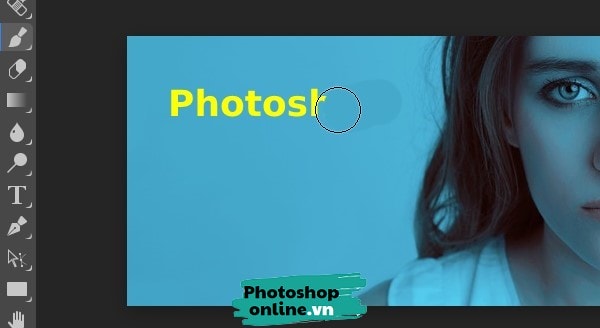 Bạn chọn Brush tool ở bên trái, nhấn phím Alt rồi click chuột vào nền nằm dưới chữ.