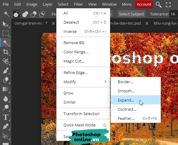 Bước 3: Đến menu chọn Select Modify Expand.